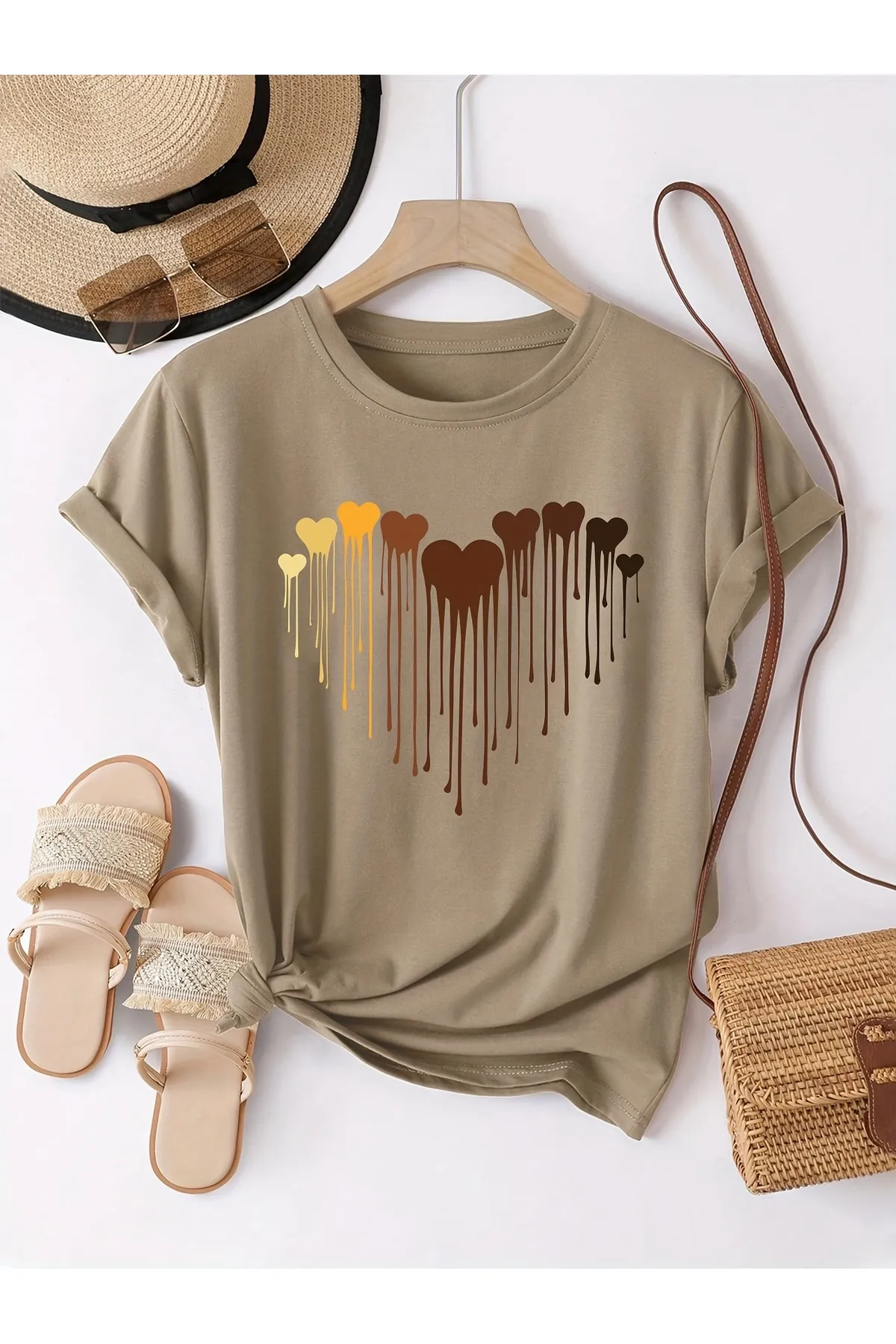 تی شرت با طرح   قلب   uyguntarz  رنگ: بژ