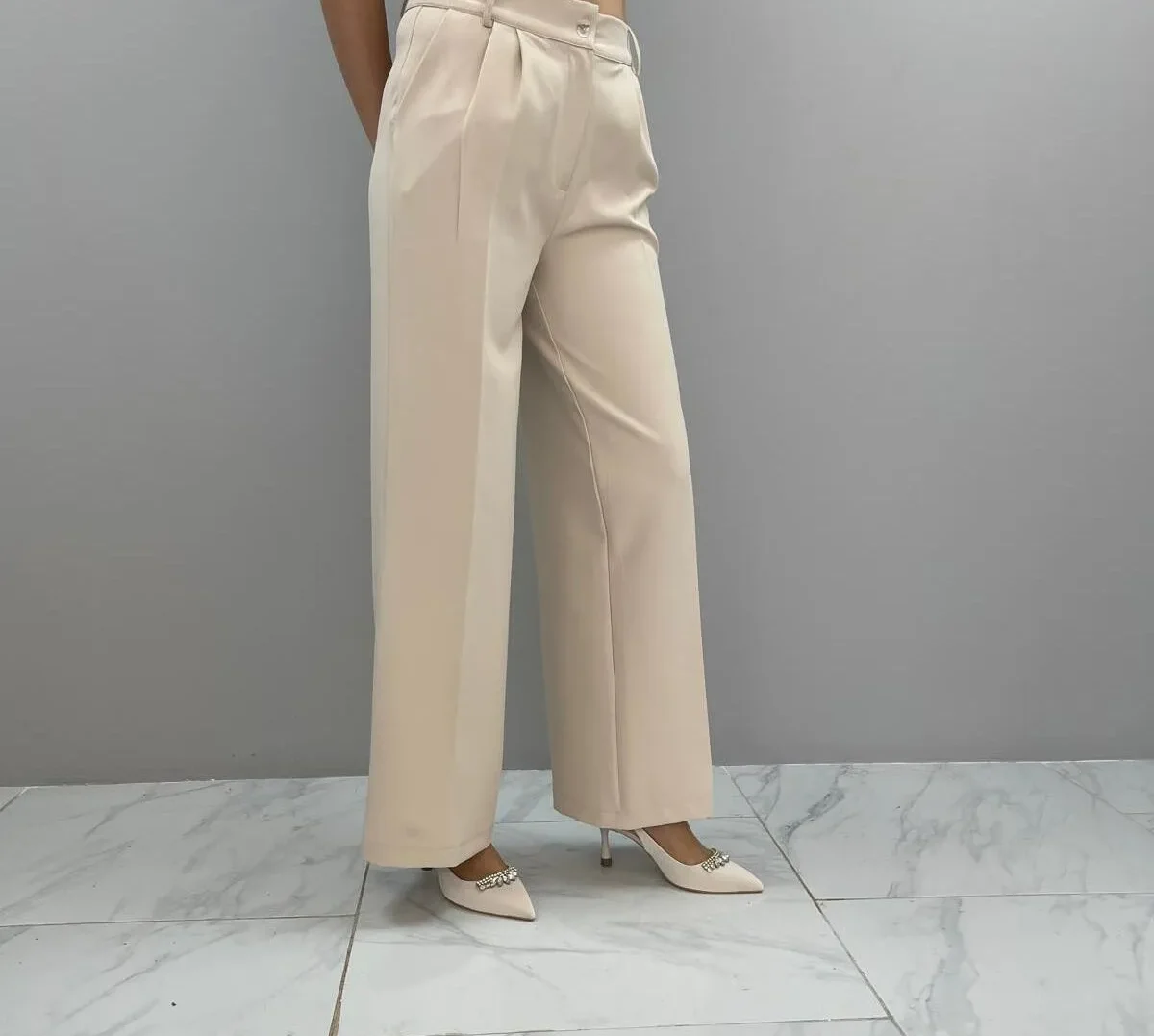 BACK Ada شلوار پلیسه دار Palazzo زنانه Cut Oversize   رنگ: خامه