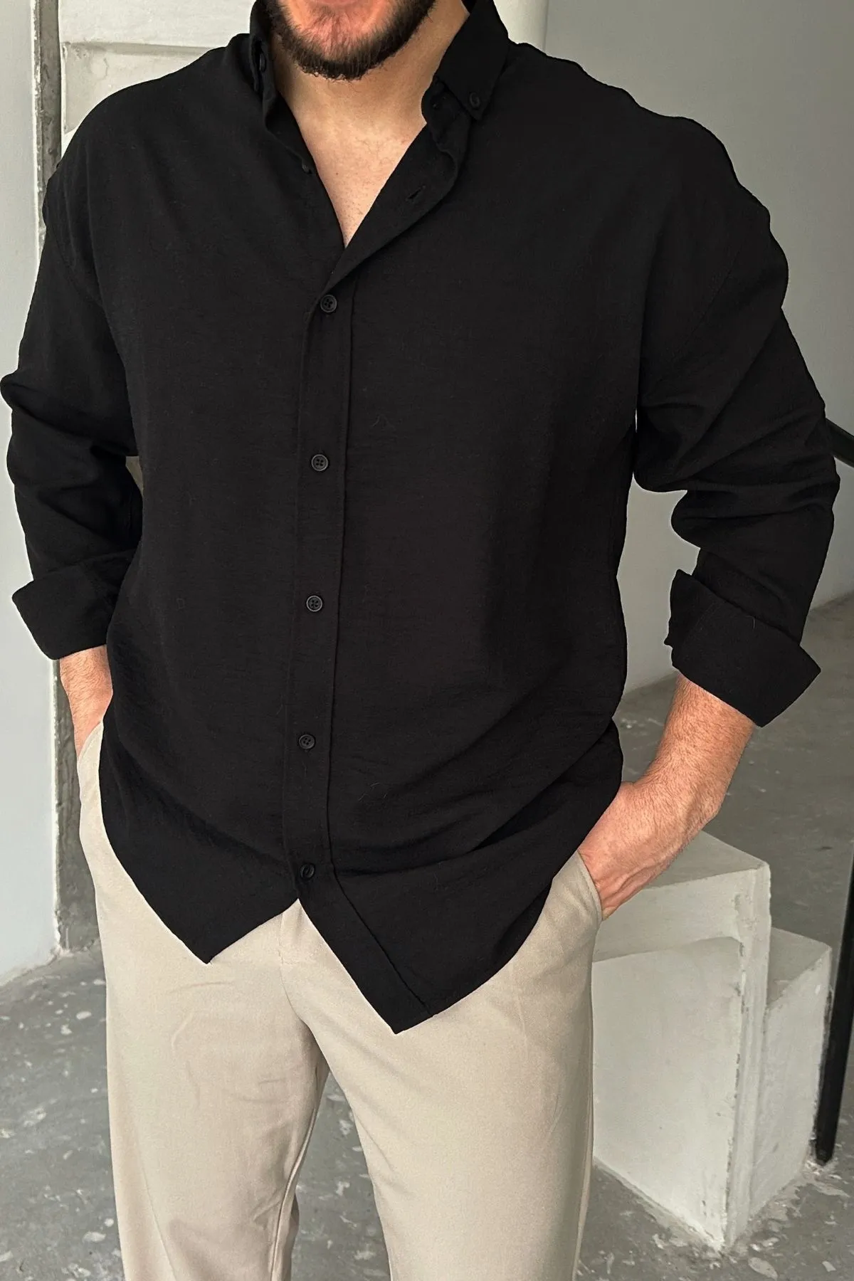 پیراهن کتانی بزرگ مردانه Livio Ferri Napas –  رنگ: مشکی